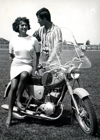 Przy motocyklu WSK M15S, na stadionie AVII. 1966 r.