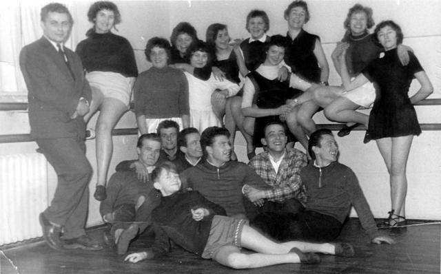 W sali baletowej, próbę baletu prowadził Józef Ignasiak (pierwszy z lewej).