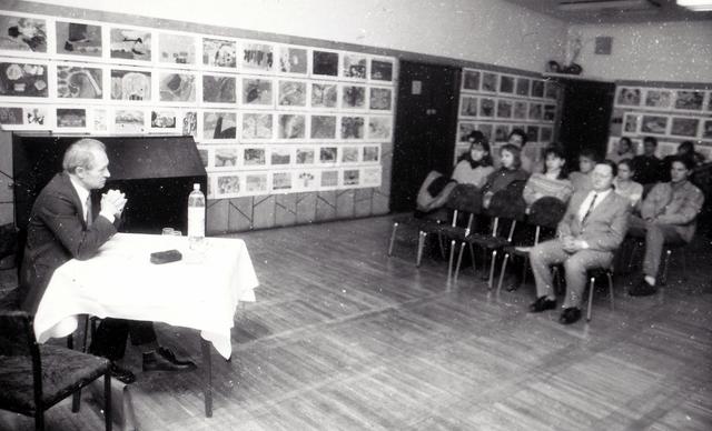 W sali SDK. Przy stoliku dr hab. Antoni Mieczkowski, prof. nadzw.; w pierwszym rzędzie dr Sławomir Myk. W drugim rzędzie pierwszy od prawej Piotr Matyjaszczyk.