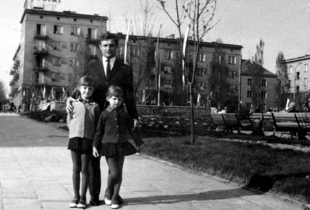 Stefan Zgardziński z córkami na placu Konstytucji 3 Maja