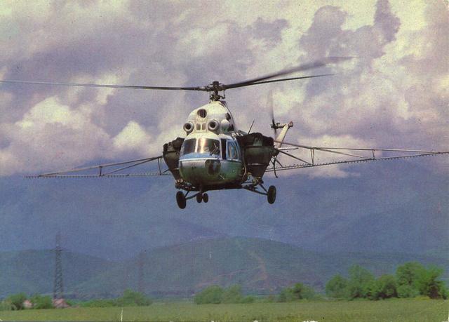 Widokówka Aeroflot, prawdopodobnie lata 80. XX w., śmigłowiec Mi-2 w wersji agro